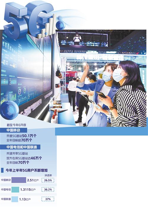 從5G基站看,截至今年6月底,中國移動已開通5G基站50.1萬個,全年目標(biāo)超過70萬個;中國電信和中國聯(lián)通共建共享5G基站,目前雙方在用5G基站達(dá)46萬個,全年目標(biāo)也是70萬個。工信部數(shù)據(jù)顯示,截至今年6月底,我國累計建設(shè)5G基站96.1萬個,覆蓋全國所有地級以上城市,5G手機(jī)終端連接數(shù)達(dá)3.65億戶,占全球80%以上。