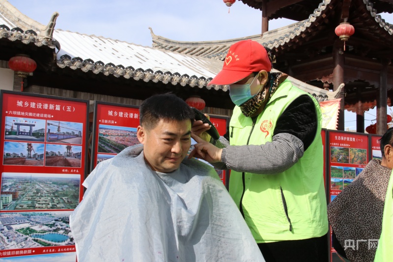 志愿者為群眾剃頭(央廣網發(fā) 趙玉梅 攝)