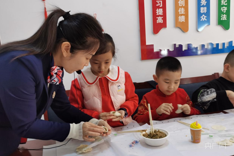 孩子們聽老師講傳統(tǒng)習(xí)俗體驗(yàn)包餃子(央廣網(wǎng)發(fā) 唐欣 攝)