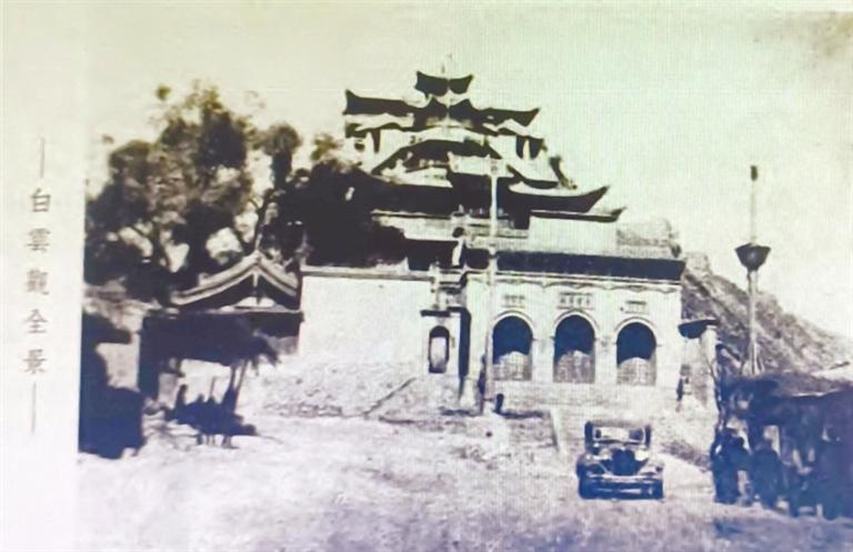 1935年5月,邵元沖考察西北途經(jīng)蘭州,專程赴崔家崖白云觀參訪?!段鞅彪S軺記》載:“依極壽山麓,建白云觀,高三百余級(jí),黃流襟帶,榆柳成蔭,書(shū)長(zhǎng)無(wú)事,凝坐其間,聆水聲潺湲,聽(tīng)鳥(niǎo)語(yǔ)啾啁,亦足滌塵煩,消炎夏。”邵元沖為此特作《題崔家崖白云觀》詩(shī)曰:“玄都峙重崖,清磬林間響。俯瞰大河橫,寒流走混□。柳晚翠煙浮,閑云獨(dú)來(lái)往。”《西北攬勝》一書(shū)中,專門(mén)刊載兩幅崔家崖白云觀照片,照片說(shuō)明曰:“北臨黃河,南接蘭山,形勢(shì)雄壯,殿宇倚坡上筑,宏麗精巧,且曲徑回廊,引人入勝,亦蘭垣名勝之一也。” 從老照片中可見(jiàn),崔家崖白云觀依山而建,頗具氣勢(shì),而且交通便利,邵元沖一行乘坐的小汽車可以直達(dá)觀前。