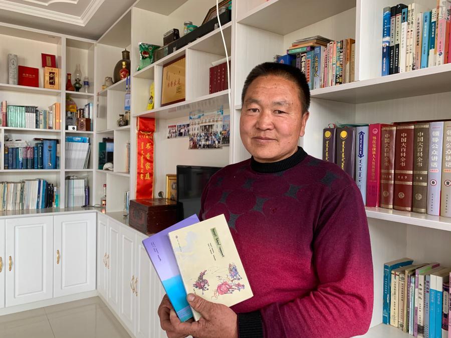 “高中畢業(yè)后我回鄉(xiāng)放牧,起初想看書也找不到書,后來外出打工才讀到更多的書,收藏的書也多了。”提及往事,孟克達(dá)來仍記憶猶新,“文學(xué)書、歷史書、工具書,我全都愛讀。”