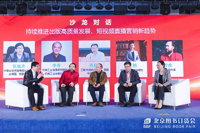 沙龍對話環(huán)節(jié)中,生活·讀書·新知三聯(lián)書店總編輯肖啟明,機(jī)械工業(yè)信息研究院院長、機(jī)械工業(yè)出版社社長李奇,華東師范大學(xué)出版社董事長、社長王焰,國家一級(jí)作家雪漠,共同探討短視頻直播營銷心得、經(jīng)驗(yàn)及趨勢。