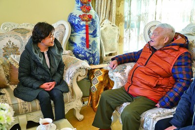2017年,中國作協(xié)主席鐵凝(左)看望彭荊風(fēng)。資料圖片