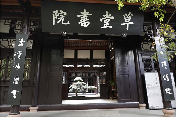 恢復(fù)重建后的草堂書院占地3000余平方米,主要由兩重三進(jìn)四合院的中國(guó)傳統(tǒng)古建筑院落和一幢單體古建三大主體建筑組成。建筑古樸典雅、氣勢(shì)宏偉,有展示書院文化的序廳、開展書院教育活動(dòng)的國(guó)學(xué)小講堂、緬懷文人先賢的名人書房、提供書院藏書閱讀的圖書館、開展書院學(xué)術(shù)活動(dòng)的研修室、開展百人以上的講座論壇的大型學(xué)術(shù)報(bào)告廳以及面向未成年人開展社教活動(dòng)的仰止堂。