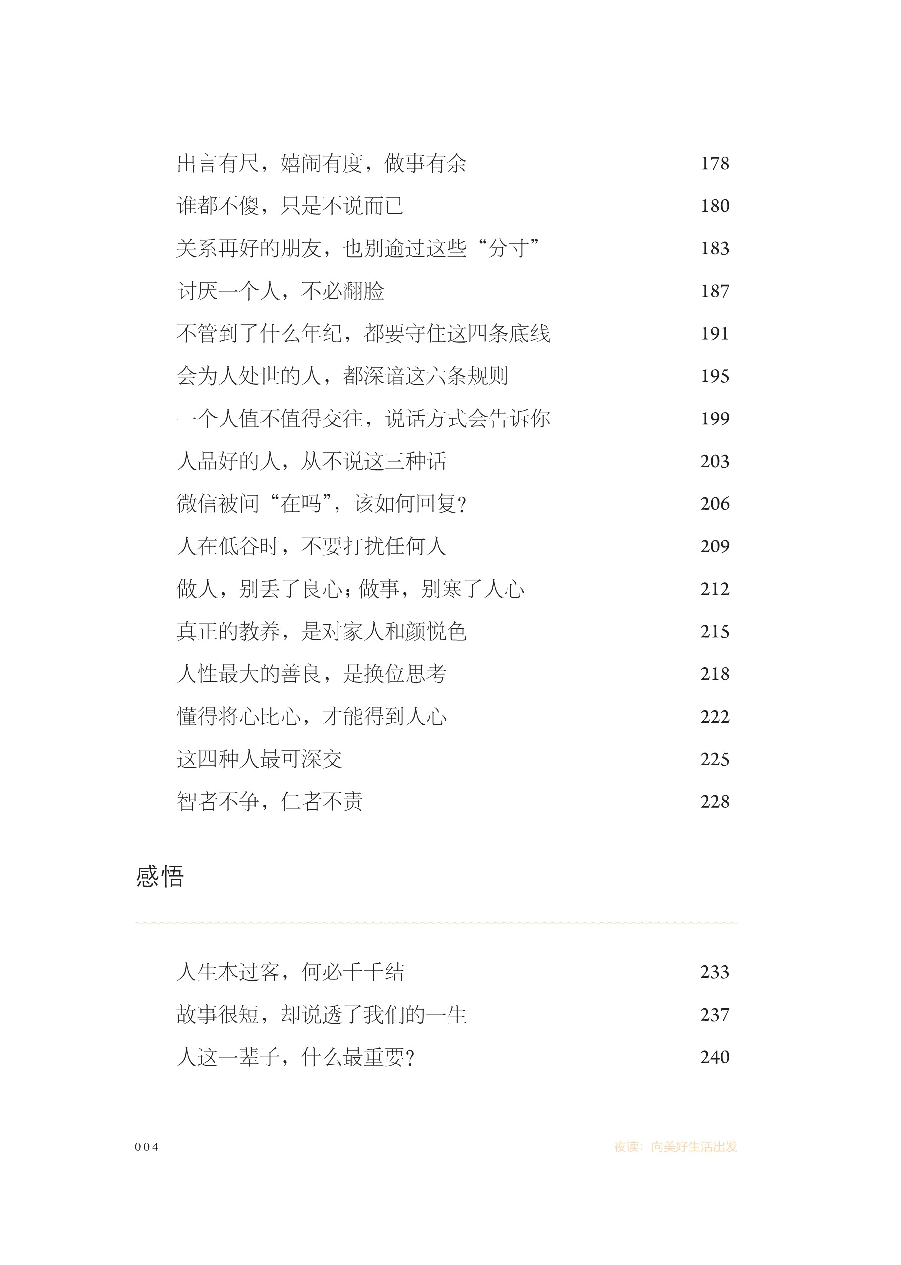 本書精選了新華社“夜讀”欄目五年來的近百篇文章,涵括親情、友情、成長、修養(yǎng)等多個話題,通過小視角身邊事給讀者帶來人生的感悟與啟迪,幫助讀者培養(yǎng)正確的價值取向和良好的品德修養(yǎng)。文章均配有專業(yè)主播朗讀,以優(yōu)質(zhì)聲音演繹精品內(nèi)容,讓讀者體驗(yàn)更多與書相伴的方式,是送給新時代青年的一本有溫度的書籍。