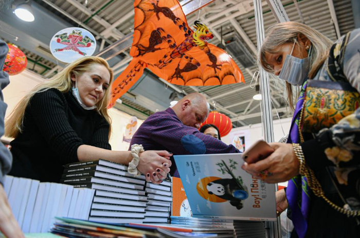 中國展臺重點展示中外文版《習(xí)近平談治國理政》等重要著作。講述中國抗疫故事、展示中國經(jīng)濟(jì)社會發(fā)展成就的一批圖書也受到俄羅斯讀者喜愛。