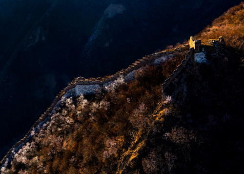 跨峻嶺,穿荒原,橫瀚海,經(jīng)絕壁,縱橫十萬里。望不斷長龍烽垛,雄關(guān)隘口,猶如玉帶明珠,點綴成江山錦繡。起伏奔騰,飛舞盤旋,長城就是中國人給這個世界增添的偉大奇跡。