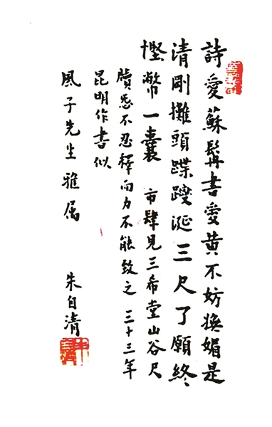 1946年春,朱國華調(diào)至四川敘永,他收到了哥哥手書的詩稿《寄三弟敘永》。朱自清深情追憶了弟弟為他轉(zhuǎn)移藏書的往事:“鐵鷲肆荼毒,鄰室無遺痕。賴汝移藏書,插架今紛綸……”兄弟二人因愛書護書情更濃。