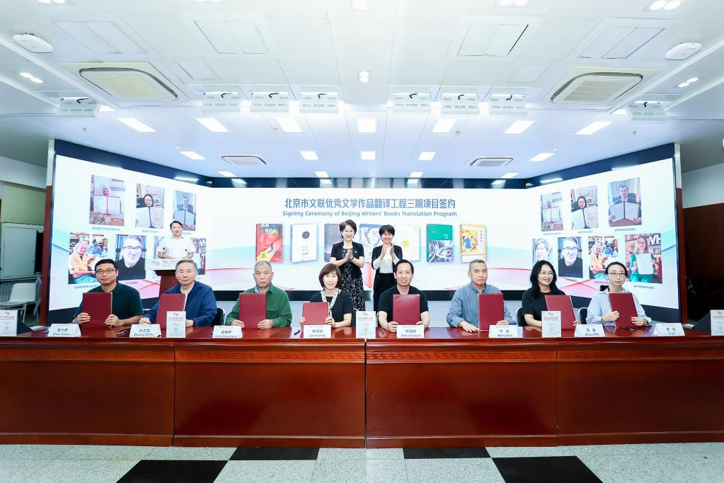 開幕式上,發(fā)布了北京市文聯(lián)優(yōu)秀文學作品翻譯工程圖書成果,周曉楓《星魚》意大利文版和英文版、葉廣芩《花貓三丫上房了》法文版、星河《北京小子》阿文版集中亮相。梁曉聲《我和我的命》、張之路《吉祥時光》、格非《月落荒寺》、畢淑敏《預約死亡》、肖復興《我們的老院》、張悅?cè)弧段已鸸舛鴣怼贰幙稀睹擅嬷恰?部作品簽署版權(quán)輸出協(xié)議,這些優(yōu)秀文學作品即將“走出去”與海外讀者見面。