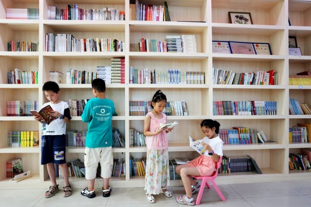 在江西省撫州市東鄉(xiāng)區(qū)千子書(shū)院,由東鄉(xiāng)區(qū)政協(xié)教科文衛(wèi)體界別政協(xié)委員打造的圖書(shū)角,市民在挑選自己喜歡的圖書(shū)。