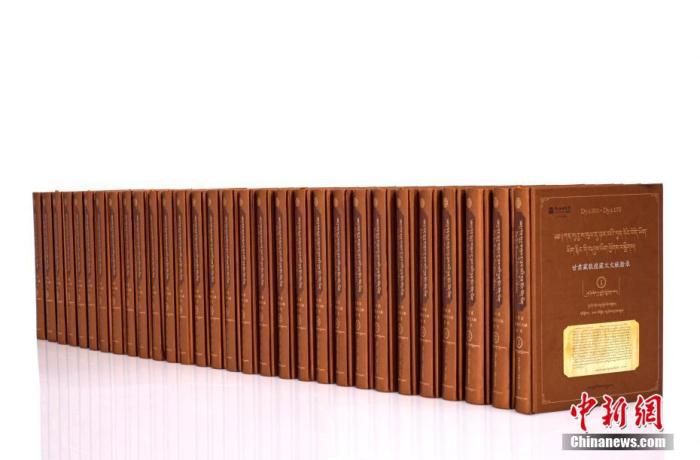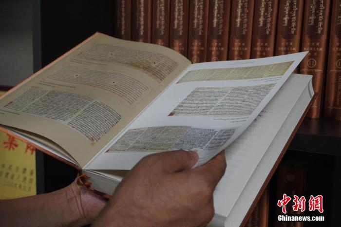 8月26日,甘肅蘭州,甘肅民族出版社資料室內(nèi)收藏的《甘肅藏敦煌藏文文獻(xiàn)勘錄》。該叢書共30卷,約2205余萬(wàn)字,收錄了6700余件甘肅藏敦煌藏文文獻(xiàn),系國(guó)內(nèi)外首次以全文錄入的方式出版。 中新社記者 九美旦增 攝