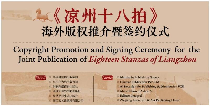6月15日下午,由浙江出版聯(lián)合集團(tuán)主辦、浙江文藝出版社承辦的《涼州十八拍》海外版權(quán)推介暨簽約儀式,將在第二十九屆北京國際圖書博覽會舉辦。儀式現(xiàn)場,葉舟就《涼州十八拍》發(fā)表主旨演講,并將簽訂《涼州十八拍》泰語、尼泊爾語、阿拉伯語、西班牙語、羅馬尼亞語等語種版權(quán)輸出協(xié)議。