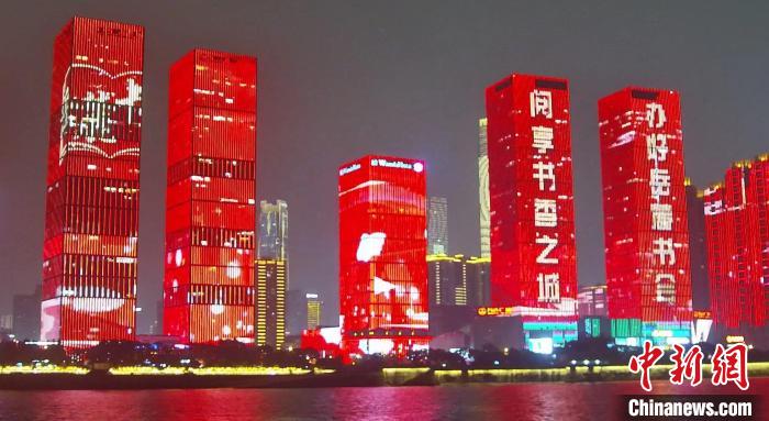 長沙湘江兩岸同步上演的岳麓書會(huì)主題燈光秀。主辦方供圖