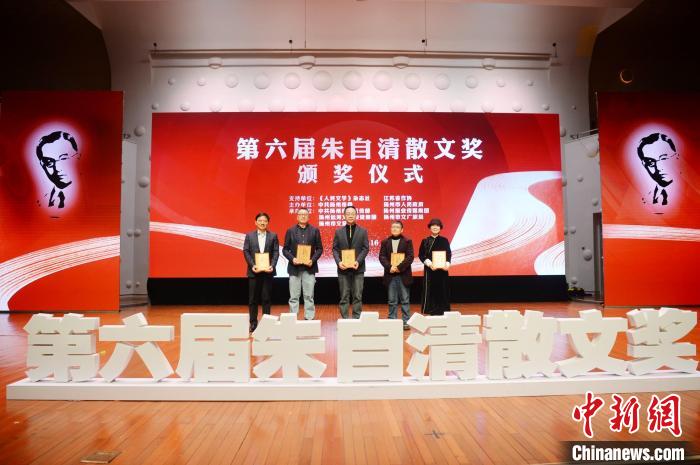 中新網(wǎng)揚(yáng)州12月17日電 (記者 應(yīng)妮)第六屆朱自清散文獎(jiǎng)16日在揚(yáng)州頒出。韓少功、南帆分別憑借《人生忽然》《村莊筆記》獲得“杰出作家獎(jiǎng)”,夏堅(jiān)勇、陳福民、蘇滄桑分別憑借《慶歷四年秋》《北緯四十度》《紙上》獲得“優(yōu)秀作家獎(jiǎng)”,晏明以《揚(yáng)州夜訪錄》獲得“揚(yáng)州籍優(yōu)秀作家獎(jiǎng)”。