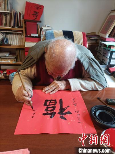 在家人拍攝的視頻中,馬識(shí)途面色紅潤(rùn),精神矍鑠,手握毛筆,伏案書(shū)“福”。窗臺(tái)上一支紅梅開(kāi)得正艷,與玻璃窗上紅底黑字的福字相映成趣。書(shū)房顯眼處還掛著馬識(shí)途親筆所寫(xiě)的“無(wú)愧無(wú)悔,我行我素”八個(gè)大字。