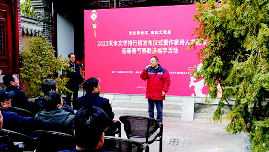 近日,由王若冰文化工作室組織評(píng)選的“2023天水文學(xué)排行榜”上榜作品揭曉,15位作家的15篇(部)作品榮登榜單。同時(shí),2023天水文學(xué)排行榜發(fā)布儀式暨作家詩(shī)人書(shū)畫(huà)家“迎新春 寫(xiě)春聯(lián) 送福字”活動(dòng)在天水古城三號(hào)院舉行。