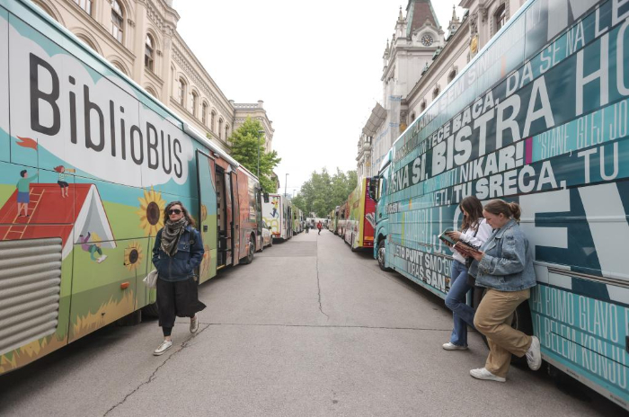 當(dāng)日,18輛裝備齊全的移動圖書館車在盧布爾雅那國會廣場和維戈瓦街展出,以慶祝為期兩天的移動圖書館節(jié)。